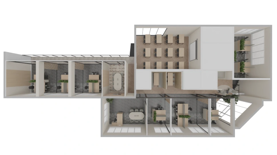 Wat veel mensen onderschatten, is dat een kantoor meer is dan alleen bureaus en stoelen. In een goed ontwerp kijk je ook naar dingen zoals licht, akoestiek en routing. Waar komt geluid vandaan? Waar wil je juist rust? Hoe beweeg je door de ruimte? Dat soort dingen zie je pas echt goed als het in een totaalplaatje zit. En precies dat maakt zo’n 3D ontwerp handig. Je merkt dan ineens: oh wacht, hier gaat het druk worden, of juist: dit voelt leeg.