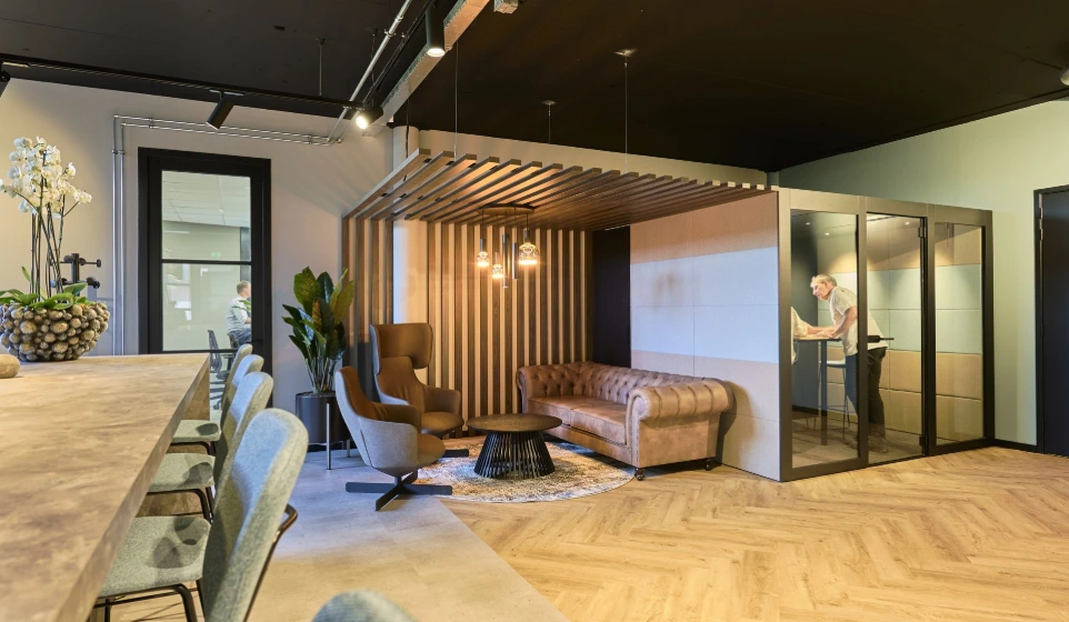 Veel mensen denken bij ons voornamelijk aan kantoormeubelen, maar onze projectinrichting omvat veel meer. Van het eerste ontwerp tot de laatste afwerking, wij regelen het volledige proces. Denk aan maatwerkmeubilair, akoestische oplossingen, verlichting, vloerafwerking, wandbekleding, raambekleding en zelfs de styling. Alles is perfect op elkaar afgestemd, met één aanspreekpunt die het hele traject in goede banen leidt.