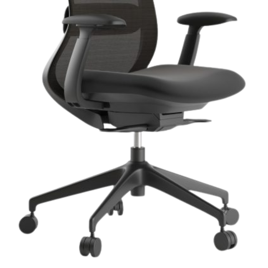 De rugleuning is uitgevoerd in hoogwaardige zwarte mesh met een combinatie van fijne elasticiteit en stevige ondersteuning. De dicht geweven vezels zorgen voor een zachte maar veerkrachtige rugoppervlakte die zich prettig naar je lichaam vormt en langdurig zijn vorm behoudt. Dankzij de open structuur is de rugleuning uitstekend ventilerend, waardoor je ook tijdens lange werkdagen comfortabel en koel blijft zitten.