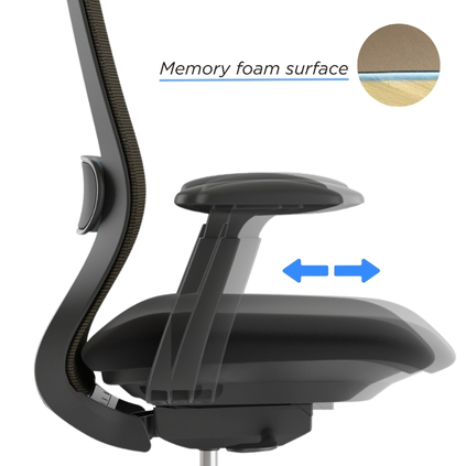 • Voor- en achterwaartse verstelling, waardoor je de armleuningen kunt afstemmen op de lengte van je onderarm voor optimale ondersteuning.